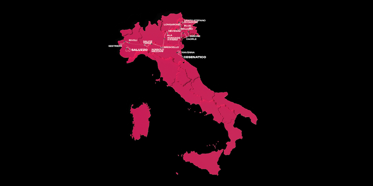 Perfectly flat stage. Start in Cesenatico and finish in Ravenna. The peloton crosses the flatlands of the Ravenna area, skirting the Comacchio wetlands, then passes the finish line to tackle two laps of a 23 km circuit.