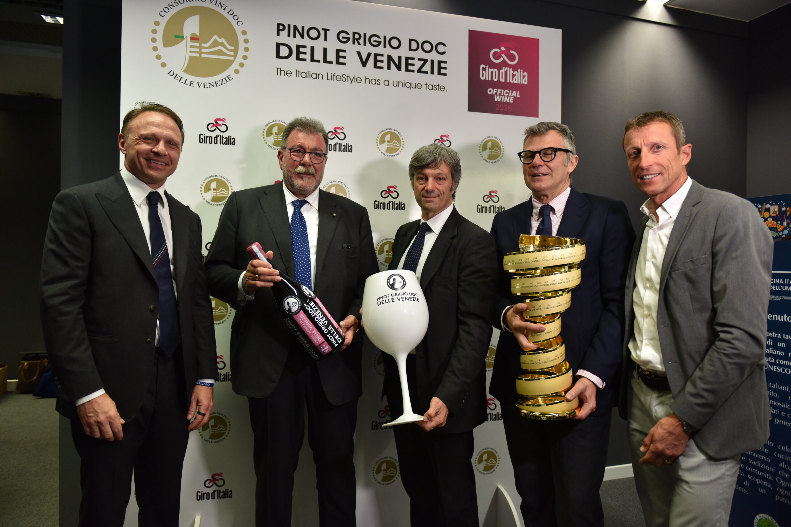 Un appuntamento che ha riunito istituzioni, imprese, mondo dello sport e rappresentanti della promozione internazionale per presentare ufficialmente la partnership che vede il Pinot Grigio DOC Delle Venezie diventare Official Wine del Giro d’Italia 2026, Giro d’Italia Women e Giro Next Gen, in un progetto triennale che punta a rafforzare il posizionamento della Denominazione sui mercati globali e a valorizzare il sistema territoriale del Nordest.